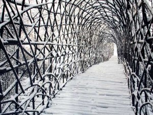 2008, Castello di Padernello, Borgo S.Giacomo (BS) L’opera non si propone per la sua utilità (anche se permette di attraversare la roggia) né per un vantaggio economico, bensì per essere “forma che rivela”. Essa apre uno spazio in cui l’uomo può accedere al colloquio con la natura offrendosi come punto che dischiude un altro ambito: quello contemplativo. Il ponte è in costante colloquio con il tempo, che tinge i giorni e le stagioni di mutevoli umori. Video prodotto dalla Fondazione Castello di Padernello